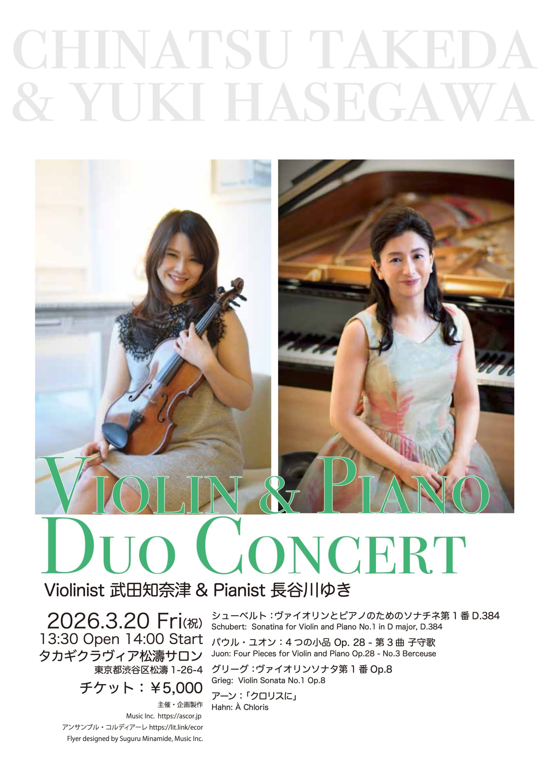 【Violinist 武田知奈津 & Pianist 長谷川ゆき Duo Concert】